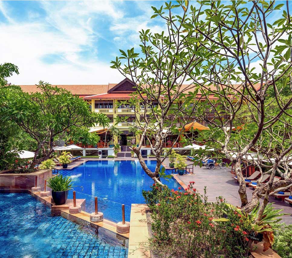 Das Resort präsentiert sich im Kolonialstil der 30er Jahre im Herzen von Siem Reap. Es vermittelt Harmonie und völlige Ruhe. Nahe dem königlichen Park befindet sich Hotel in unmittelbarer Nähe zum berühmten Angkor-Wat, deren Tempel zum Weltkulturerbe gehören.